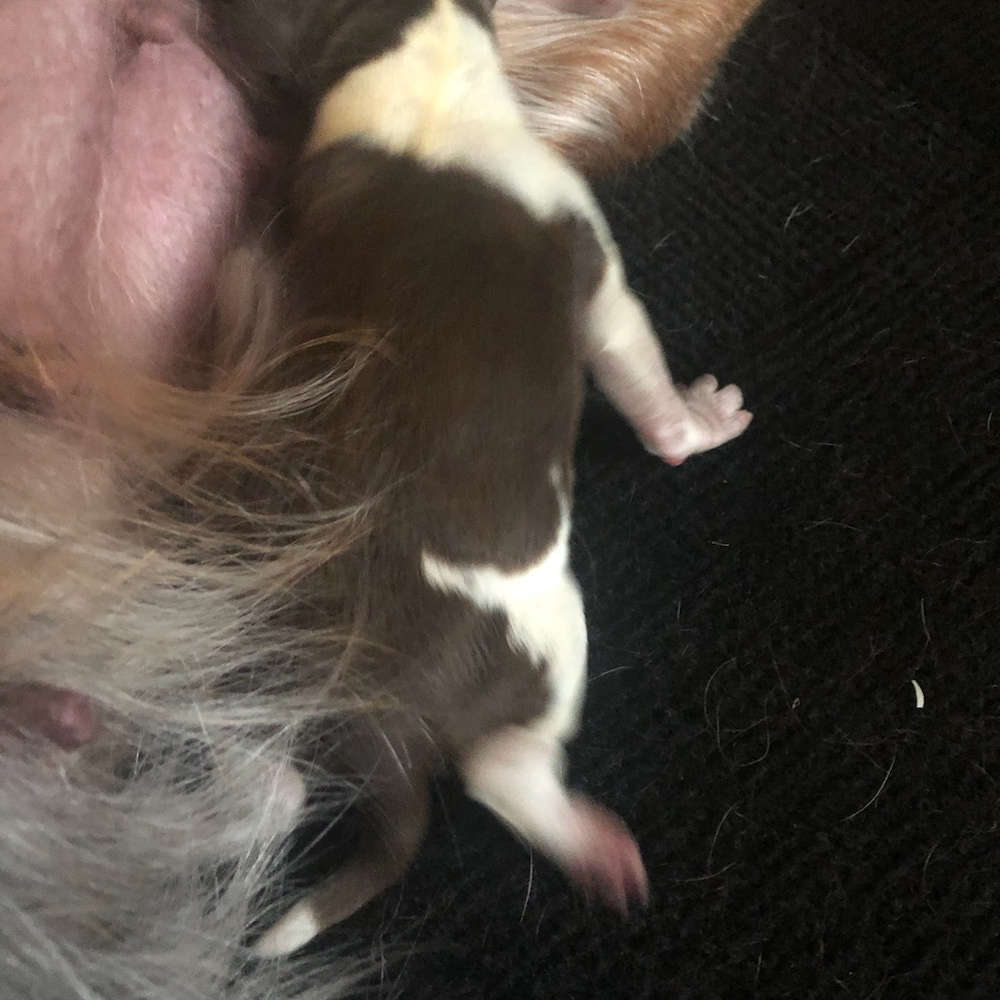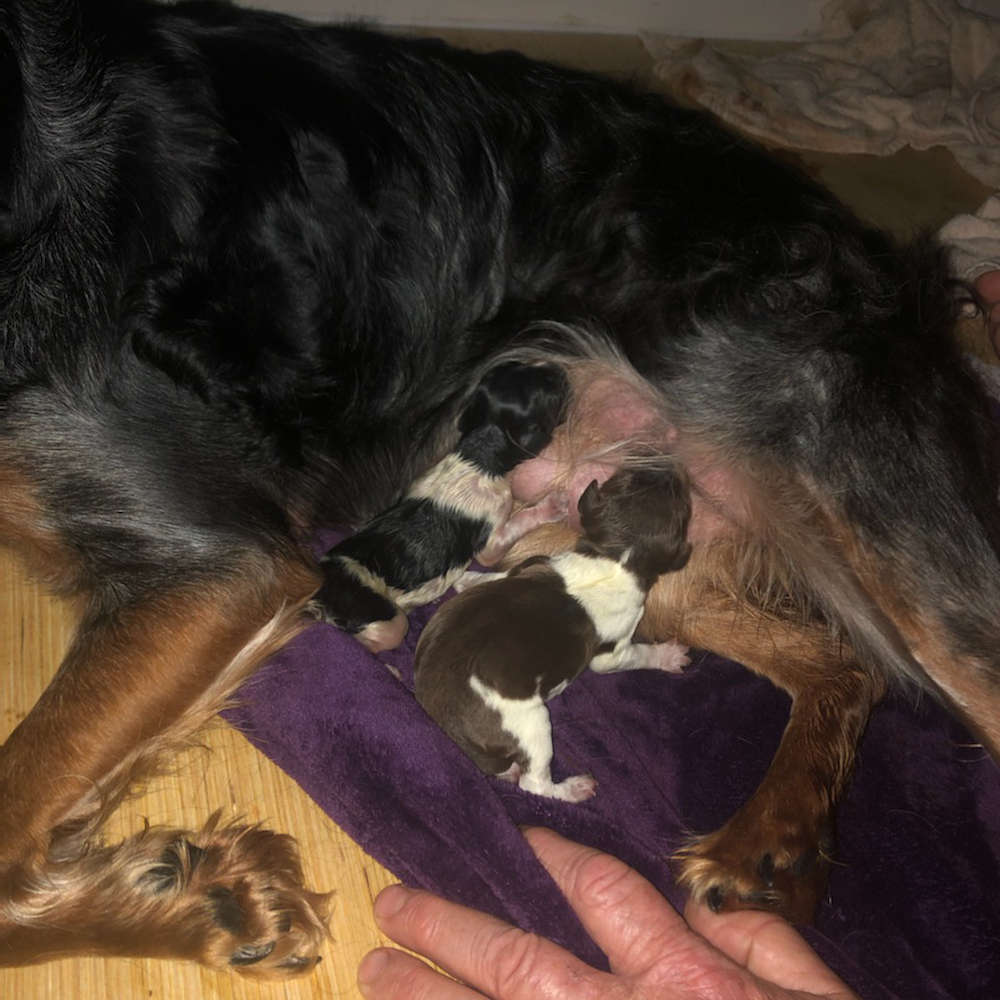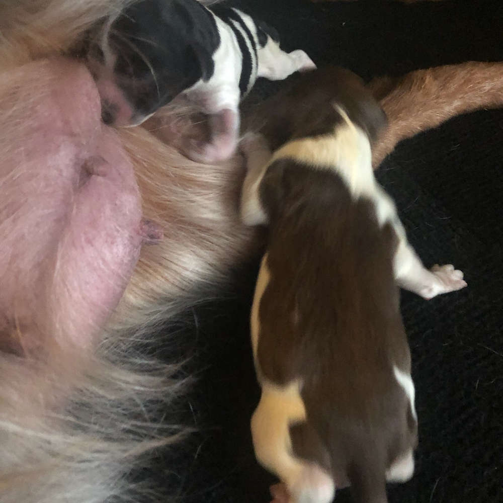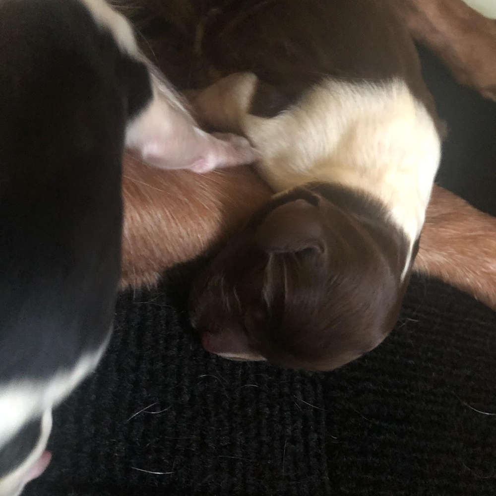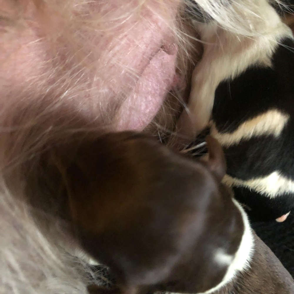 - Liver/White- male, SigSauer des Grands Lacs (aka Sig)